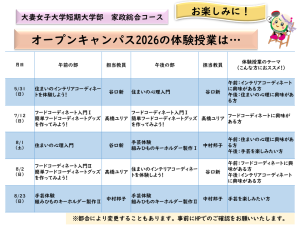 今年も短期大学部 家政総合コースでは、各日程2つの体験授業を実施します。